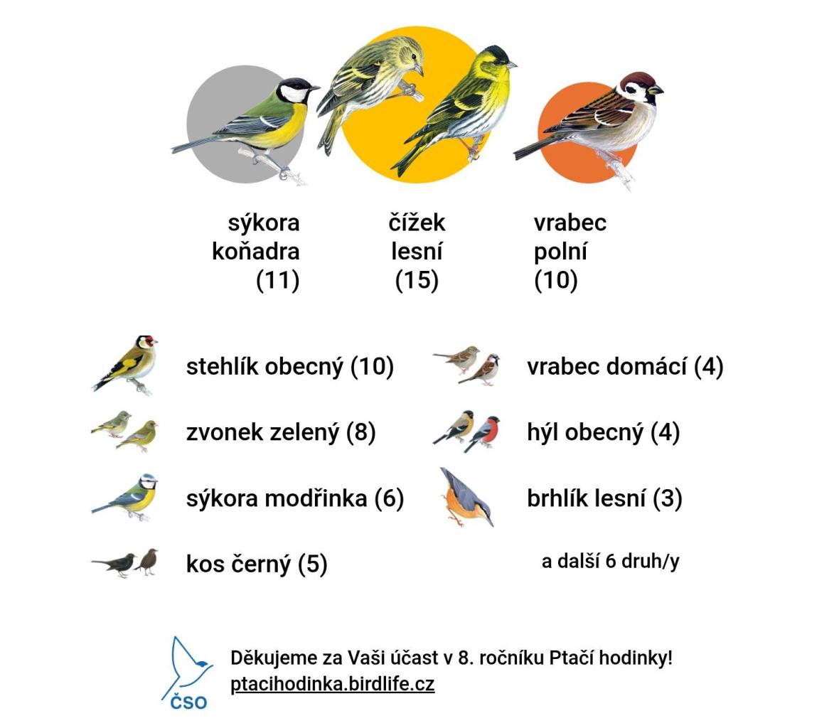 Stejně jako každoročně tisíce lidí po celém Česku jsme v Hamzově arboretu v rámci akce Ptačí hodinka, vyhlášené Českou společností ornitologickou, sčítal dne 9. ledna ptáky na krmítku a v jeho okolí již po osmé.